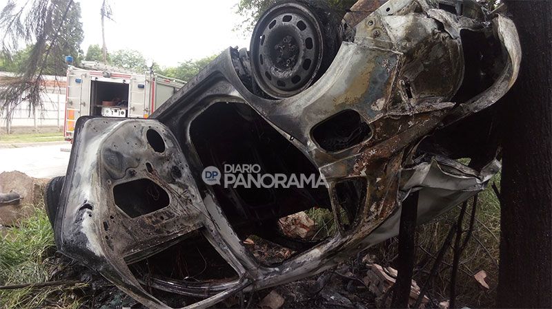 Impresionante vuelco e incendio de un auto en Camino de la Costa