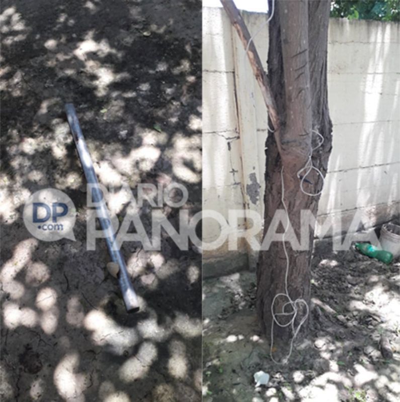 Durante el allanamiento se secuestró un hierro ensangrentado, personal de Criminalística inspeccionó la vivienda donde la pareja vive con sus tres hijos menores de edad, y se constataron manchas de sangre en el patio, escenario donde sucedieron los violentos episodios de maltrato animal.