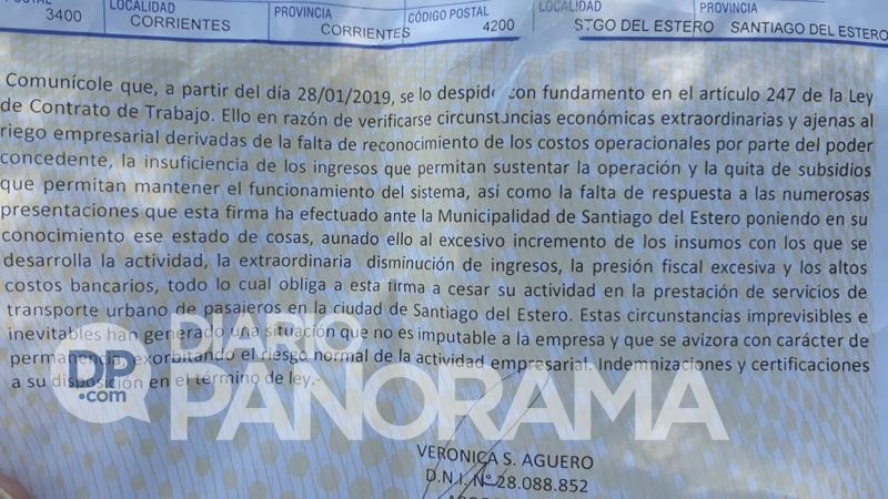 Esto precipita la salida de la empresa como prestadora del servicio de transporte público de pasajeros de la capital santiagueña a pesar de la promesa de la firma de abrir una instancia de diálogo.