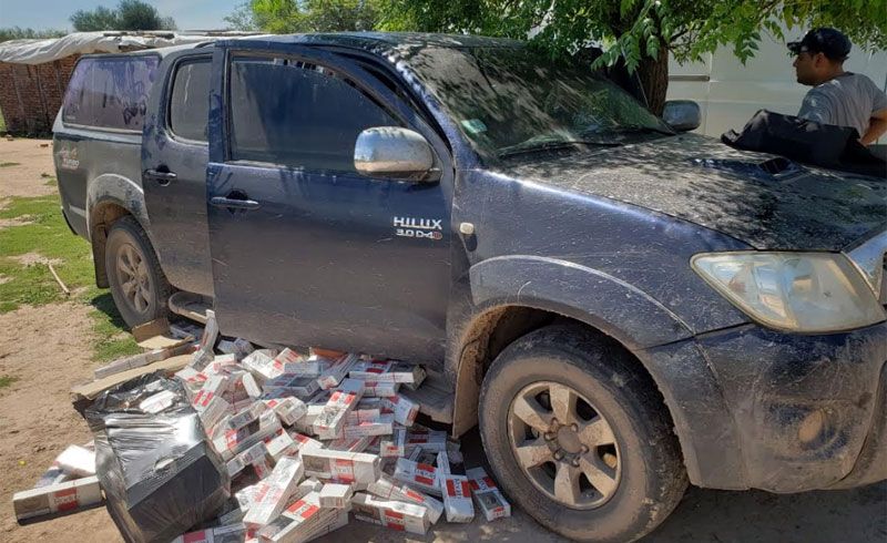 camioneta Toyota Hilux, que estaba completamente cargada de packs de cigarrillos marca Rodeo, y una