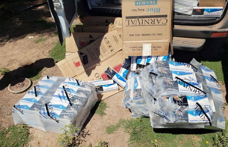 50 tiras de atados de cigarrillos, cada una discriminados entre marcas Rodeo y Carnival. Se investiga la posible participación de un
