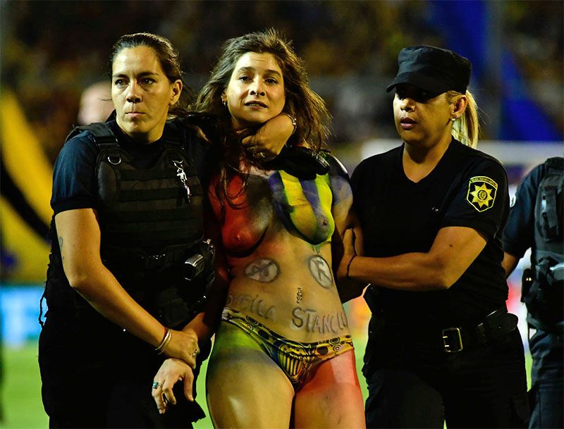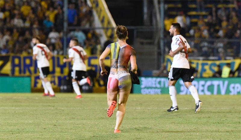 Transcurrían 8 minutos del segundo tiempo en Arroyito; Rosario Central ya le había empatado 1-1 el partido a River a partir del gol de Agustín Allione, con complicidad de Franco Armani. Desde una de las tribunas, una mujer saltó al campo, se quitó la remera, y comenzó a correr entre los futbolistas, provocando la sorpresa de los protagonistas y de todos los espectadores.