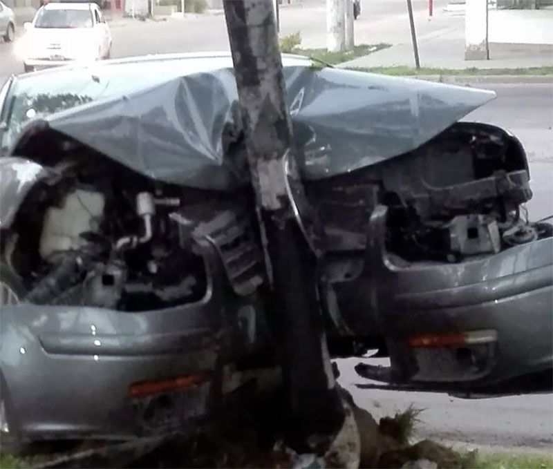De acuerdo a la información policial, el conductor, fuera de control se llevó puesto un poste de alumbrado ubicado a metros de la vereda del paseo de la plaza Juan Domingo Perón.