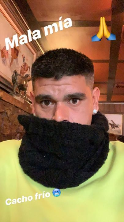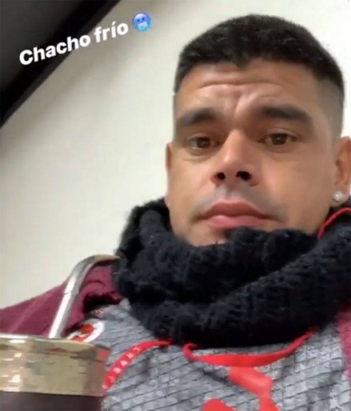Actualmente en México, donde atraviesa un buen momento, Bou subió una historia a su cuenta de Instagram en la está tomando mate en el vestuario del Tijuana y puso: "Chacho frío", junto con una carita congelada.