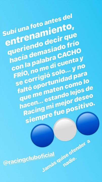 Luego de la polémica, el ex jugador de Racing salió a aclarar el posteo nuevamente en las redes sociales.