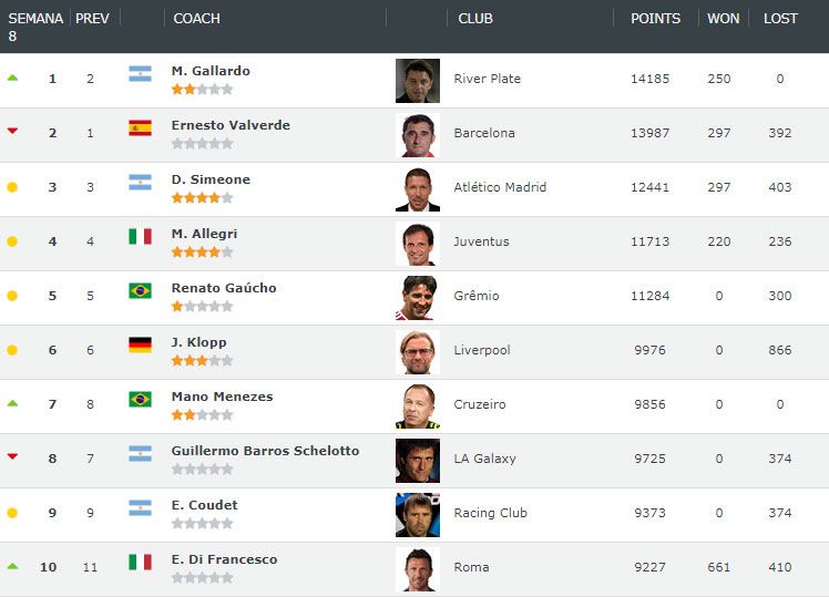 Marcelo Gallardo subió a la cima en el ranking mundial de entrenadores. El DT de River Plate, superó a su par de Barcelona, Ernesto Valverde quien ostentaba el cetro tras la desvinculación de Zidane del Real Madid.