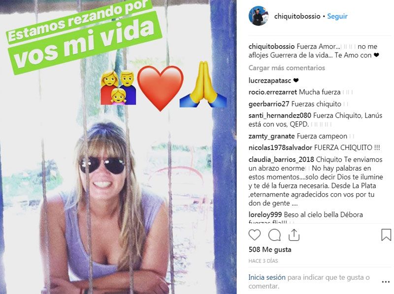 Bossio había publicado el jueves pasado un conmovedor mensaje en su cuenta de Instagram en donde pedía por la recuperación de Débora. "Fuerza Amor... No me aflojes Guerrera de la vida... Te amo con mi corazón".