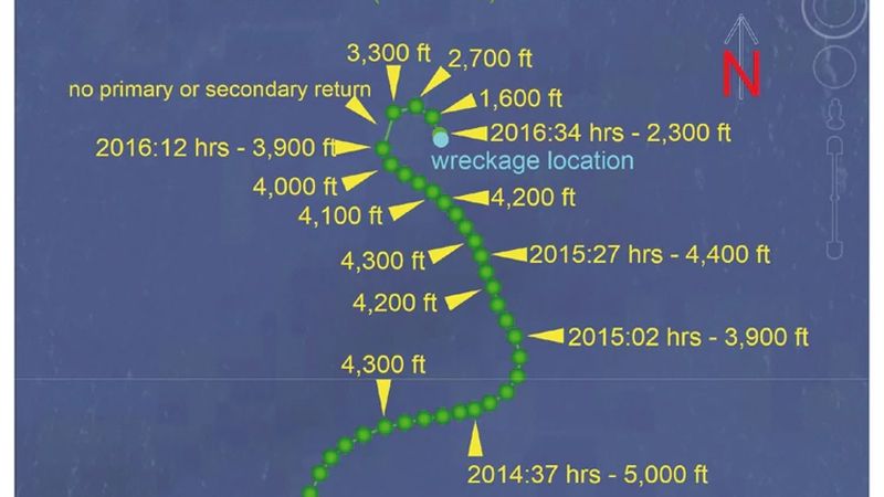 "Segundos después se registró el eco final del radar secundario que indicó que la aeronave podría haber ascendido rápidamente cerca de los 2300 pies (700 m)", analizaron los investigadores a través de las imágenes.