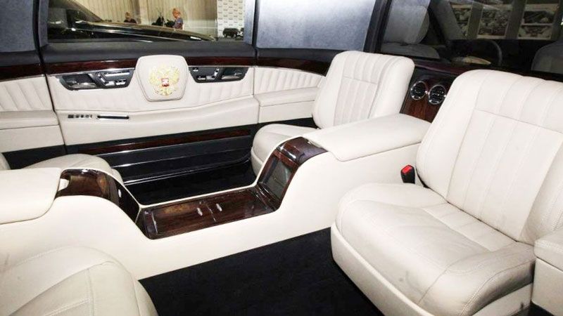 Se difundieron imágenes del interior de la limusina de fabricación rusa Aurus, uno de los secretos mejor guardados de los rusos que siempre impidieron a los fotógrafos acercarse a documentar de cerca el vehículo.