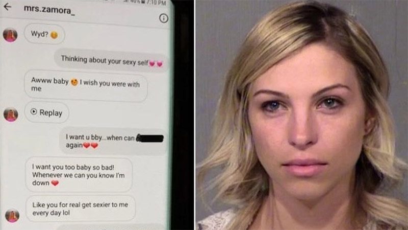 Según la policía, Zamora presuntamente tuvo relaciones sexuales con el adolescente tres veces y realizó actos sexuales con él en el aula y en el coche. La mujer, además, le mandó fotos de ella misma desnuda y en lencería.