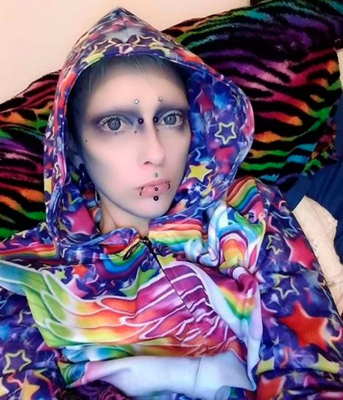 Tiene 33 años, nació como mujer pero pasó a convertirse en hombre cuando tenía 29. Ahora cree que no encaja en ningún género humano y que es un alienigena.