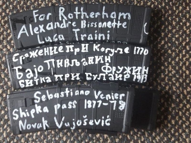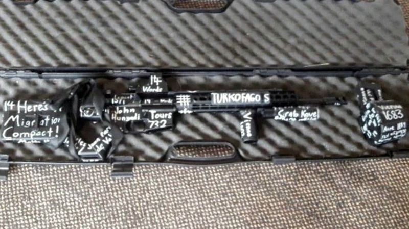 Las inscripciones que hizo sobre los rifles semiautomáticos y los cartuchos hacen referencia a otras masacres cometidas contra migrantes, así como también viejas batallas entre cristianos y musulmanes.