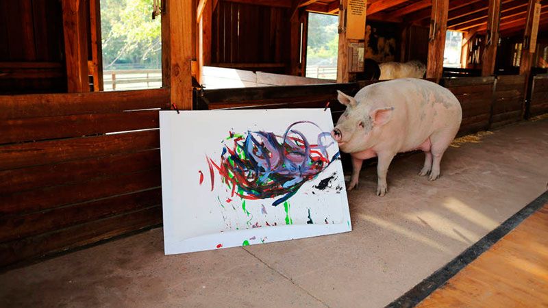 La cerdita fue rescatada del matadero en una pequeña ciudad de Sudáfrica. Ahora, este animal de apenas tres años de edad se ha convertido en un auténtico fenómeno de la pintura y sus obras se venden a miles de euros.