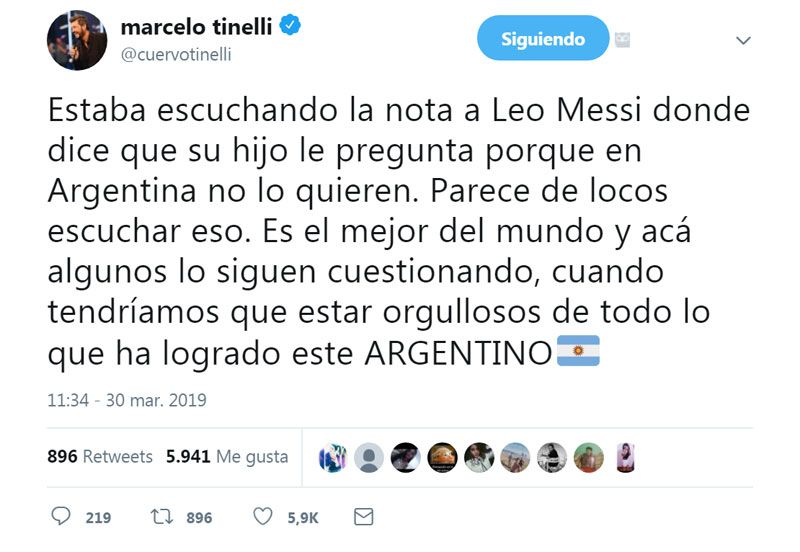 El empresario se hizo eco por Twitter de las declaraciones que hizo Messi el día anterior en una entrevista radial en la que contó que su hijo mayor le preguntaba por qué en Argentina lo critican tanto.