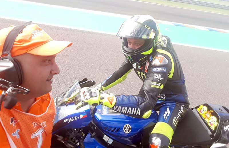 Fue asistente de pista en el MotoGP y, cuando "El Doctor" se bajó a saludar a sus fans, se subió a su Yamaha para tomarse una foto. Es chofer de ambulancia en el Cepsi y expresó: "Esta será una gran historia para los chicos". Fotos y videos.