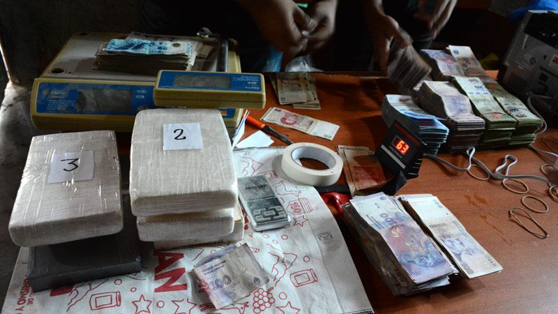 En total, se incautaron 7 kilos de una sustancia blanca en polvo en el interior de los denominados “ladrillos”, que al ser sometida a la prueba de orientación de campo, arrojó presencia de clorhidrato de cocaína de alta pureza y la nada despreciable suma de 5 millones de pesos en efectivo que sería producto de la venta en los domicilios allanados donde funcionarían los “kioscos” de venta ilegal de drogas.