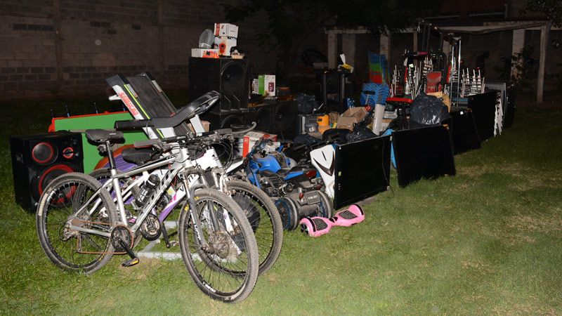 También fueron incautados, cinco televisores Led de 47 pulgadas Sony, dos NETBOOKS, dos Notebooks, cuatro tablets, dos equipos de música profesional; alrededor de 50 sillas, mesas, mobiliario vario, un lavarropas , una gran cantidad de zapatillas y en sus respectivas cajas y prendas de vestir de altísima calidad y ropa deportiva de las mejores marcas, sin uso; cintas caminadoras y máquinas para realizar actividad física, dos bicicletas, dos minimotos a motor, juguetes y cuantiosos elementos del hogar.