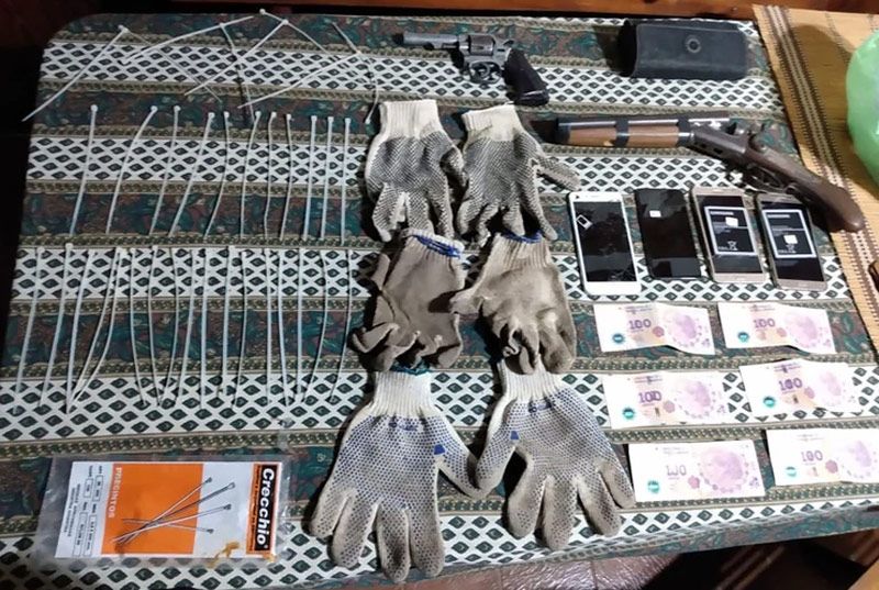 En los allanamientos a los domicilios de los tres sospechosos, en las localidades de Florencio Varela y Berazategui, la policía secuestró dinero, armas de fuego (escopeta recortada, otra calibre 28, tres revólveres calibre 32 con municiones), celulares, alhajas y seis bicicletas alta gama con numeración suprimida. También elementos con los que, presumen, robaban: precintos, guantes de tela y de látex y medias de lycra utilizadas como capuchas.
