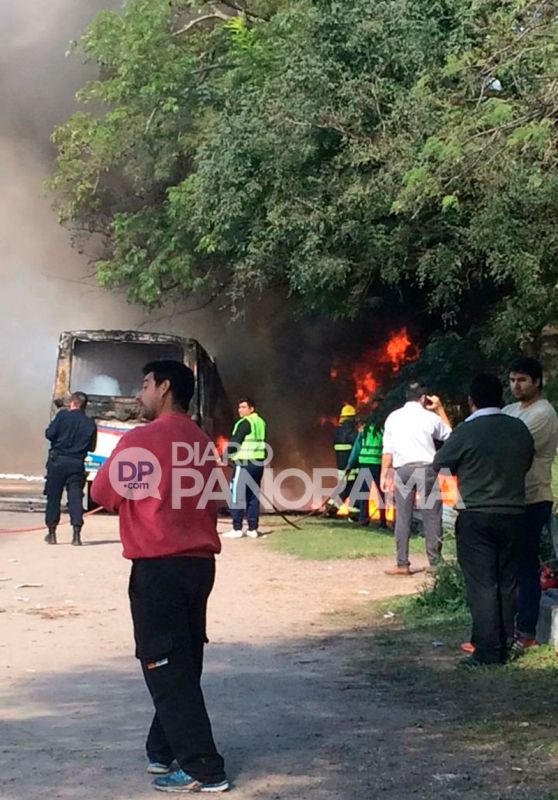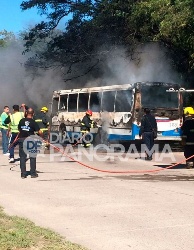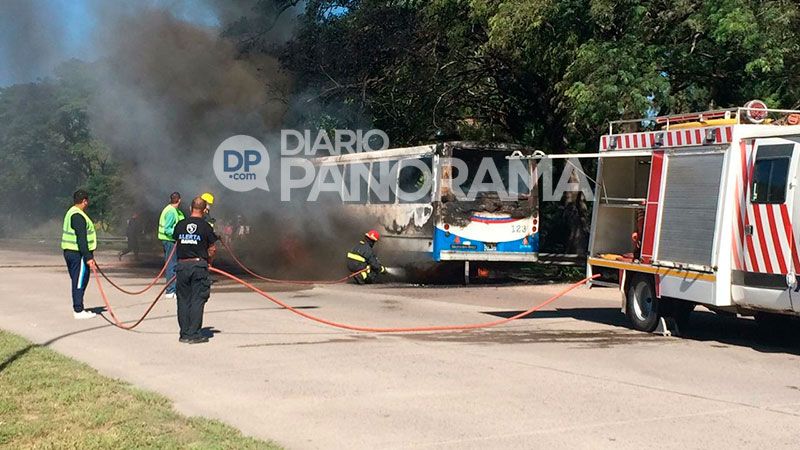 Por causas a establecer se originó un incendio en un colectivo cundo circulaba por autopista Juan Domingo Perón. Bomberos y policías trabajaron intensamente para controlar las llamas.