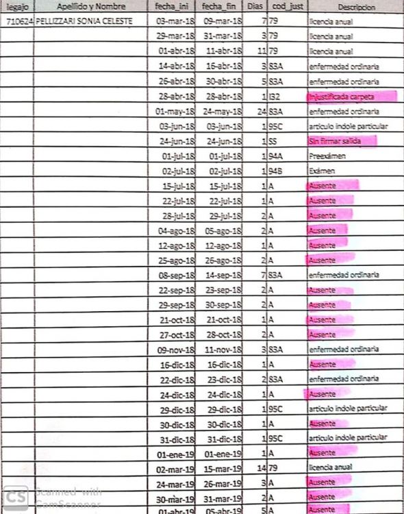 Pellizzari negó esta acusación y manifestó que "el registro que difundieron, en donde me atribuyen 19 faltas, es mentira. Trabajé ocho años en la municipalidad. ¿Cómo podría haber trabajado tanto tiempo ahí si faltaba todo lo que ellos dicen?".