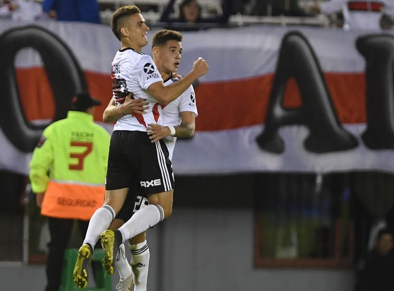 Después de un cabezazo al palo derecho de Enzo Pérez y de un latigazo dal otro poste de Fabrizio Angileri, el volante uruguayo firmó su primer doblete en el club tras una inteligente cesión dentro del área de Borré.