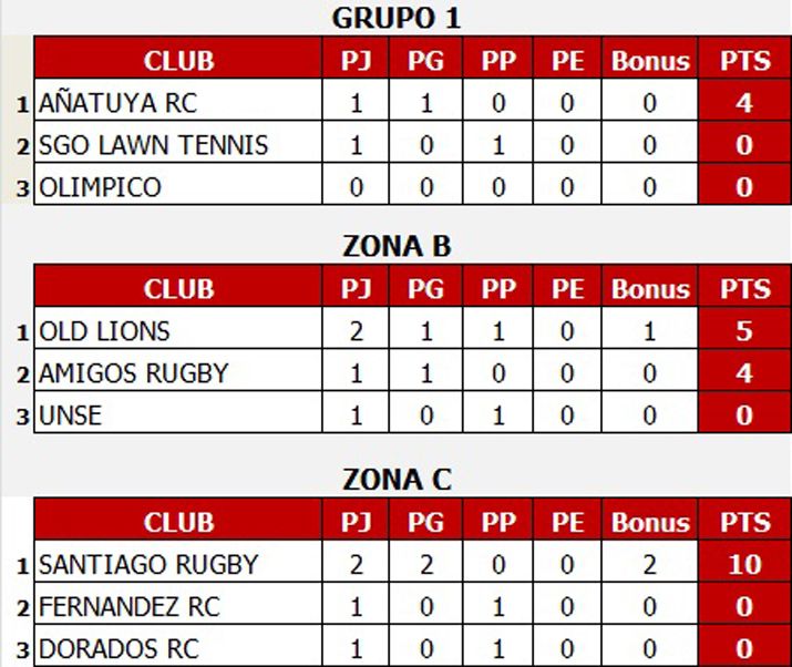 Mientras tanto por el Grupo 3, Santiago Rugby se aseguró el primer lugar tras vencer 27 a 3 a Dorados, por lo que jugará las semis de Copa de Plata junto al segundo y tercero del Grupo 2. La última plaza la disputarán Fernández RC y Dorados en la próxima fecha.