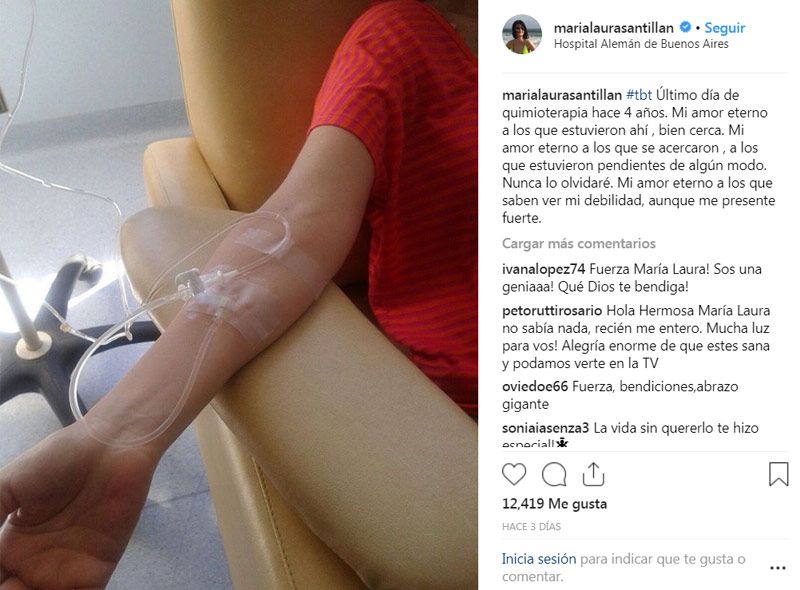 "Último día de quimioterapia hace 4 años. Mi amor eterno a los que estuvieron ahí, bien cerca", comenzó diciendo la conductora de Telenoche al lado de esa postal en la que se ve uno de sus brazos conectado a un catéter a través del cual, en aquel momento, le administraban la medicación correspondiente.
