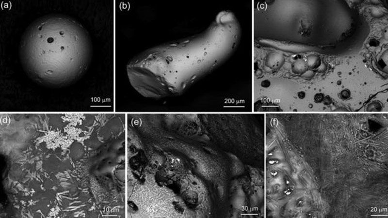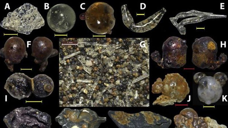 Algunas eran similares a otras halladas en sitios de impactos de meteoritos, pero otras parecían tener una composición similar al caucho y contenían una variedad de materiales recubiertos de una capa de vidrio o silicio.