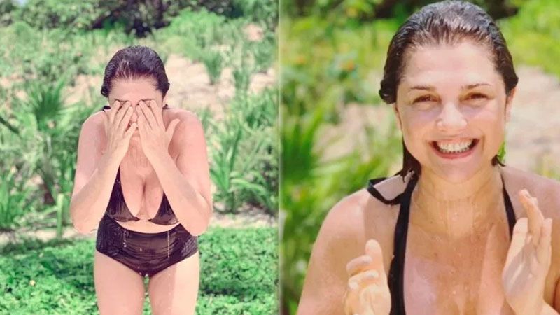 La actriz y su esposo se encuentran de vacaciones en el Caribe. Ella compartió la foto casual que le sacó el actor.