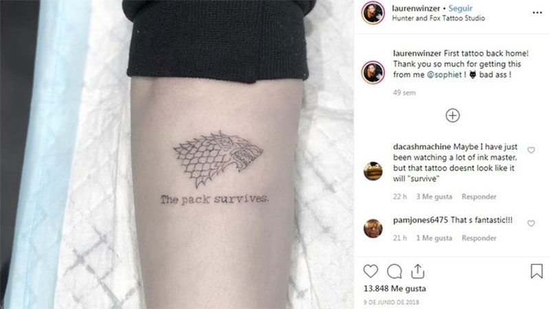 Sophie Turner, la actriz que interpreta a Sansa Stark, se hizo un tatuaje hace un año atrás con una frase que encaja a la perfección con el cierre de la serie. "The pack survives" (en castellano: "La manada sobrevive"), junto al logo de la casa Stark.
