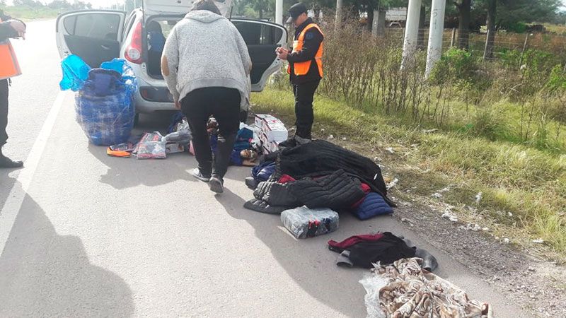 Al ser revisados se dieron con que se trata de ropa de procedencia extranjera (camperas, remeras térmicas, medias, guantes, calzas, gorros, ropa interior féminas y masculinas) sin su aval aduanero. Entre las ropas también llevaban pavas eléctricas.