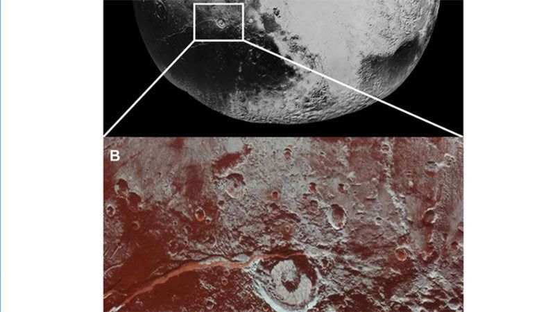 El estudio efectuado en Plutón hizo foco en imágenes captadas al norte de Cthulhu, un conocido accidente geográfico del planeta enano. Allí se encuentran los canales adyacentes de Virgil Fossae, caracterizados por su color rojo. Según explican los investigadores en su estudio, unos pocos cráteres cercanos comparten esta coloración. Esa zona coincide con los hallazgos de agua en base al sobrevuelo de New Horizons.