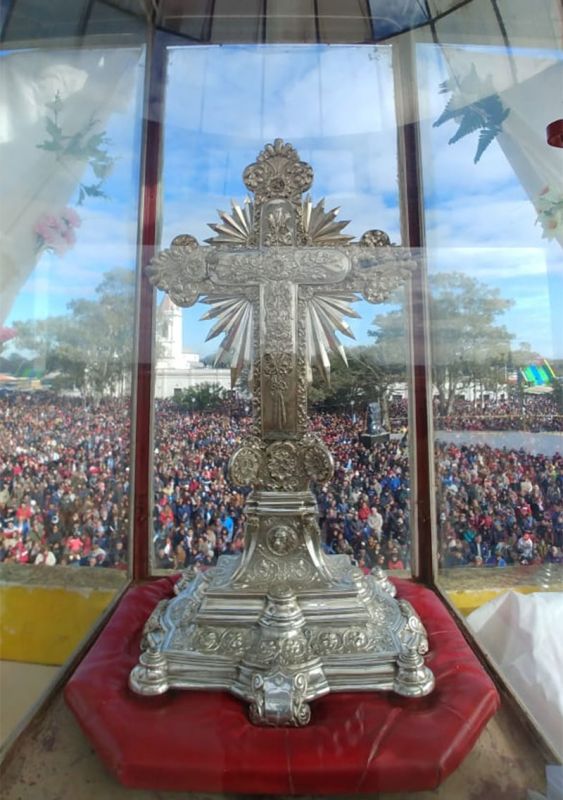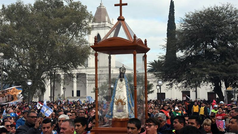 La imagen de la Virgen, que llegó a la villa el viernes, estuvo ubicada junto a la Cruz en el templete de la plaza principal del pueblo, y allí tomaron gracia los miles de fieles.