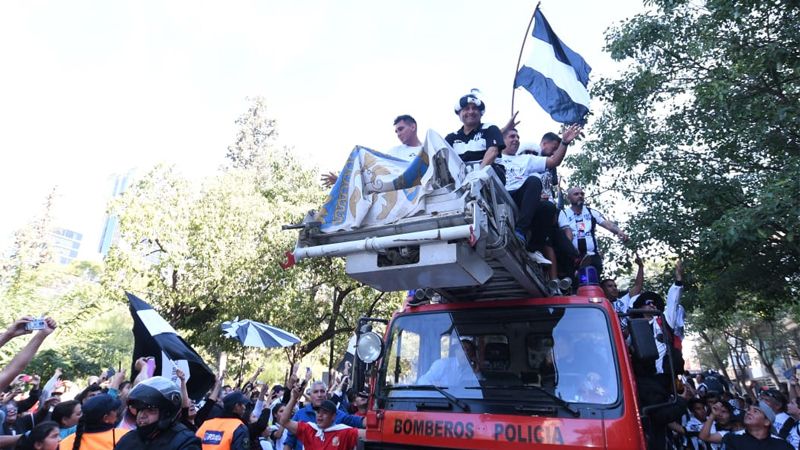 Los protagonistas bajaron del micro y luego se subieron a una autobomba, para encabezar una multitudinaria caravana hacia ciudad Capital.