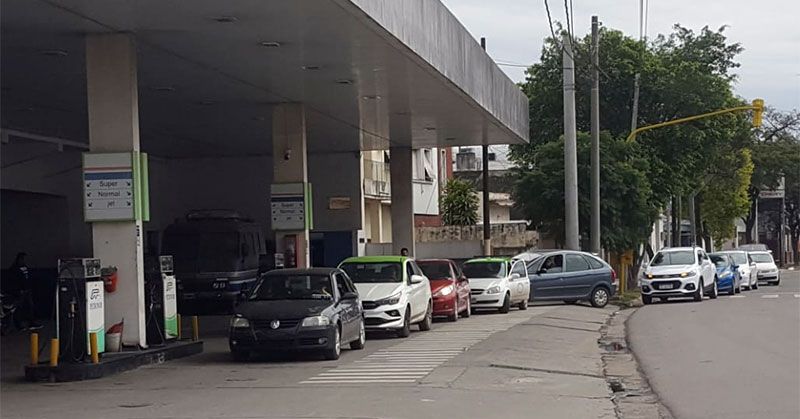 En las esquinas con semáforo se generan inconvenientes, mientras que los vehículos hacen largas colas a la espera de poder cargar combustible.