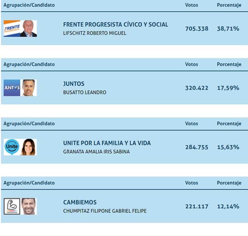 Con el 75% de las mesas escrutadas queda en tercer lugar (15% de los votos) detrás de Miguel Lifschitz (39%), del partido socialista, y Leandro Busatto (17%) del peronismo. Le sacó 3 puntos de ventaja al candidato de Cambiemos, Gabriel Chumpitaz (12%).