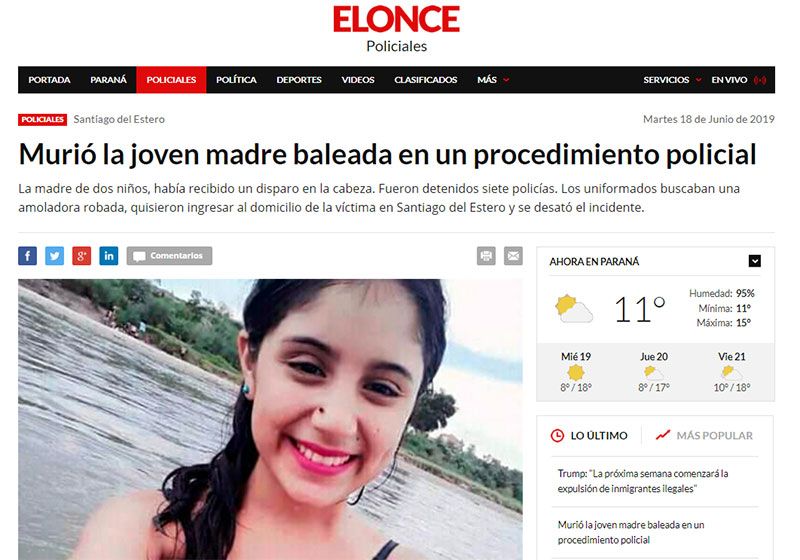 Silvia Verónica Maldonado tenía apenas 17 años y era madre de dos hijos pequeños. Durante un procedimiento policial en su vivienda del barrio Gas del Estado, que terminó con incidentes, fue herida por parte de un efectivo con un disparo en la cabeza. Ingresó en grave estado y finalmente murió en la madrugada de este martes.