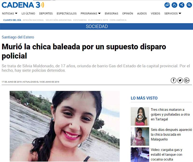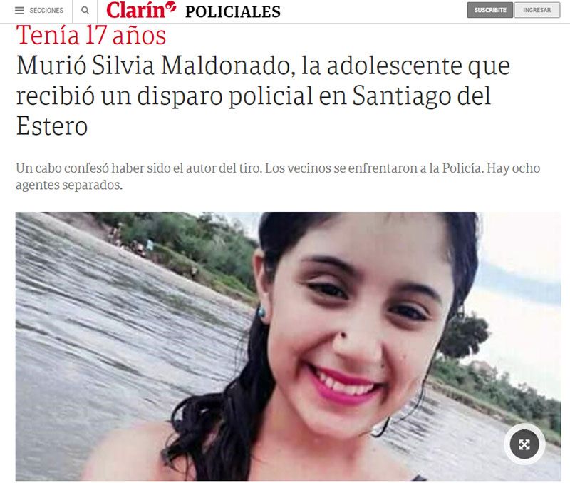 Silvia Verónica Maldonado, tenía 17 años y falleció tras recibir un disparo en la cabeza durante un procedimiento policial.