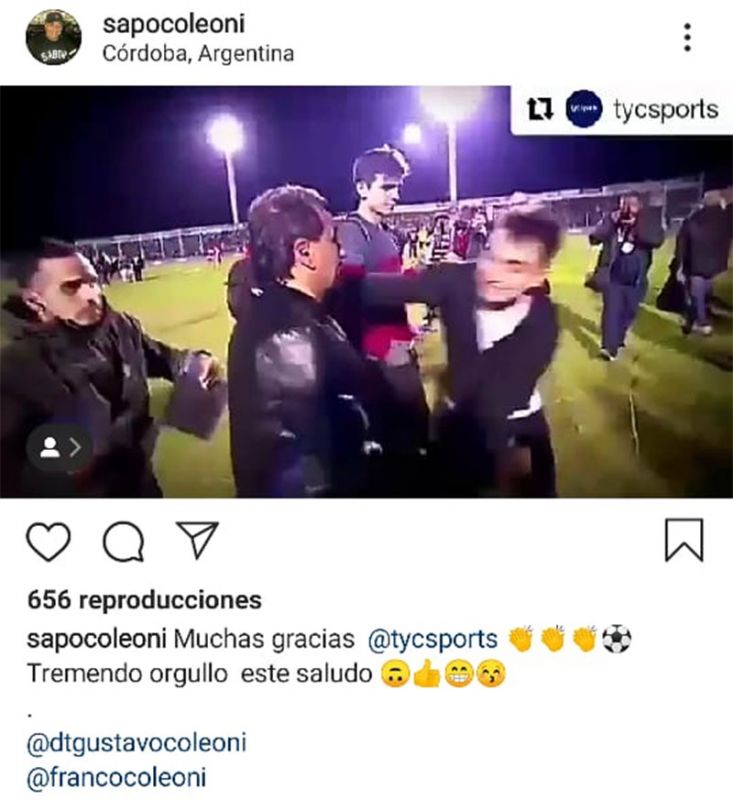 "Sapito" agradeció a través de su cuenta de Instagram. "Muchas gracias @tycsports, Tremendo orgullo este saludo".