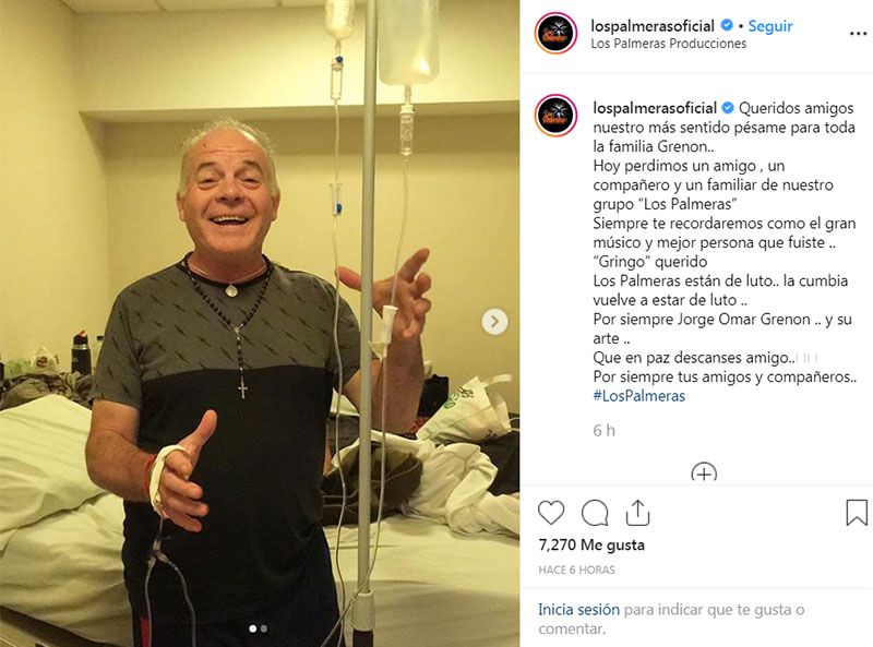 La bailanta está de luto. Murió Jorge Grenón, el histórico guitarrista del grupo Los Palmeras. La dolorosa noticia fue confirmada a través de las redes sociales de la popular banda.