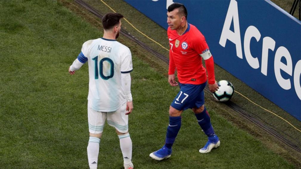 El tercer puesto de la Copa América entre Argentina y Chile se vivió en medio de un clima caliente, como si fuera una nueva final entre ellos, y los jugadores se sacaron chispas en cada cruce. Y en el más caliente, Lionel Messi y Gary Medel quedaron cara a cara, se pecharon fuertemente y el árbitro Mario Díaz de Vivar les mostró la roja a los dos en una polémica decisión.