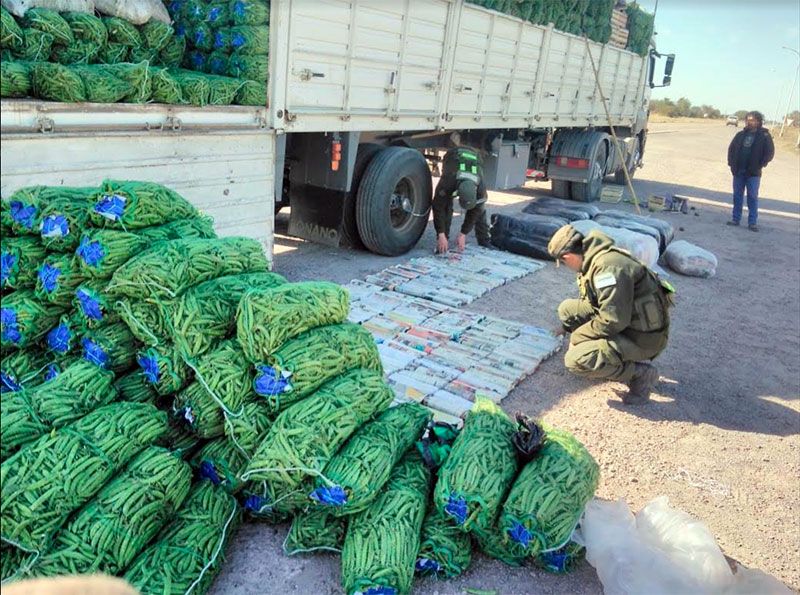 Durante la inspección los uniformados hallaron entre las bolsas de verduras, bultos con mercadería del rubro tienda, contabilizando un total de 120 camperas que se encontraban en infracción a la Ley 22.415 “Código Aduanero”.