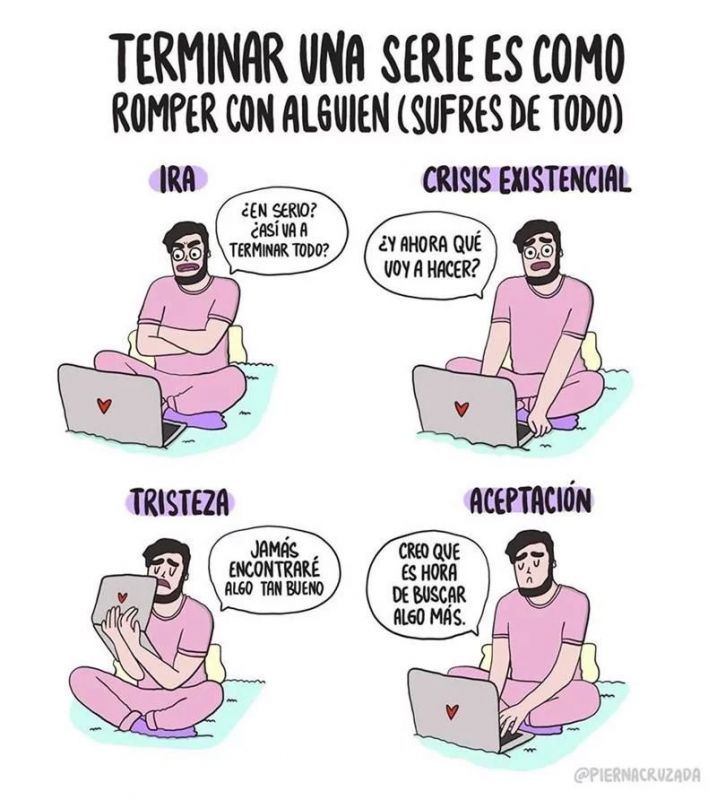 También es común que este mecanismo cause una perspectiva o expectativa subjetiva asociada, un pensamiento negativo: "Nunca volveré a tener una igual". Esta emoción conduce a la apatía que es la pérdida de motivación. Para levantar el ánimo sugerimos que compartas en los comentarios que serie recomendás desde tu lugar, para quien esté pasando por este momento de duelo reducido. ¿Te sumás?