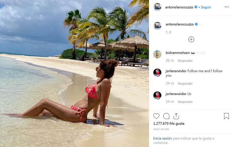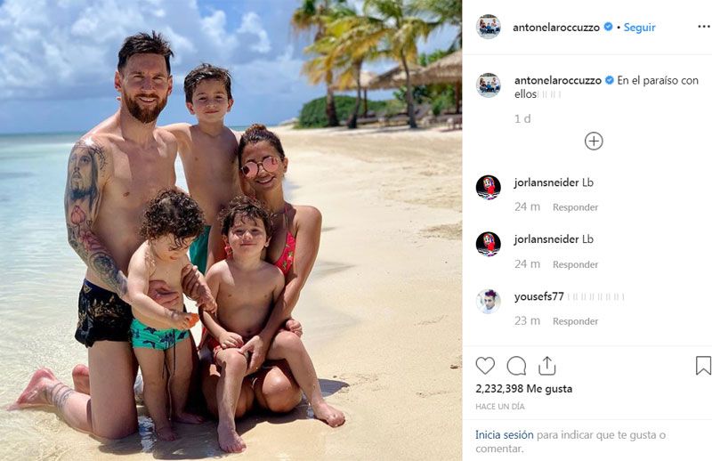 El futbolista compartió una imagen con Antonela desde las arenas blancas caribeñas que son, según los medios españoles, las de Antigua y Barbuda. Por Instagram, ellos mostraron diferentes escenas del disfrute familiar: Roccuzzo, en los días previos, había subido diversas fotos también desde las playas.