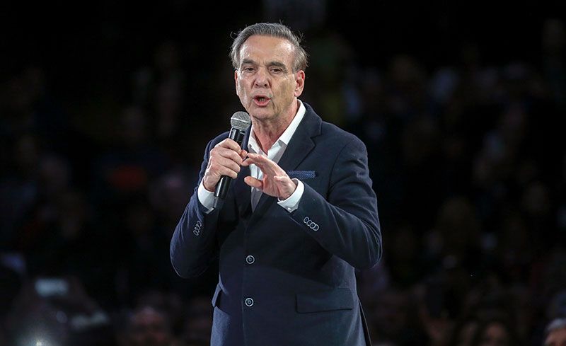"Quiero presentar a la que va a seguir siendo gobernadora de la provincia de Buenos Aires", llamó el senador a Vidal al momento de convocarla al centro del gimnasio.