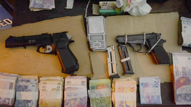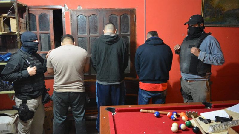 Policía de la provincia realizó 7 allanamientos y se secuestraron casi 700 mil pesos en efectivo y vehículos, además de drogas y armas. Hay 9 detenidos.