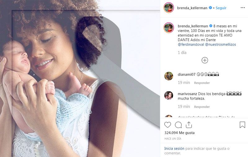 Kellerman, por su parte, se despidió de su hijo en la misma plataforma y con una sentida imagen: "Ocho meses en mi vientre, 100 días en mi vida y toda una eternidad en mi corazón. Te amo, Dante. Adiós mi Dante", expresó.