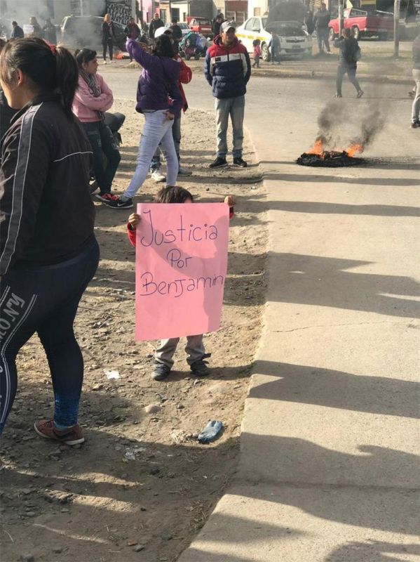 Durante la mañana, vecinos de Benjamín se convocaron a través de las redes sociales e interrumpieron el tránsito con quema de neumáticos en la avenida Juan B. Justo al 3.400 para reclamar justicia y el esclarecimiento del hecho.
