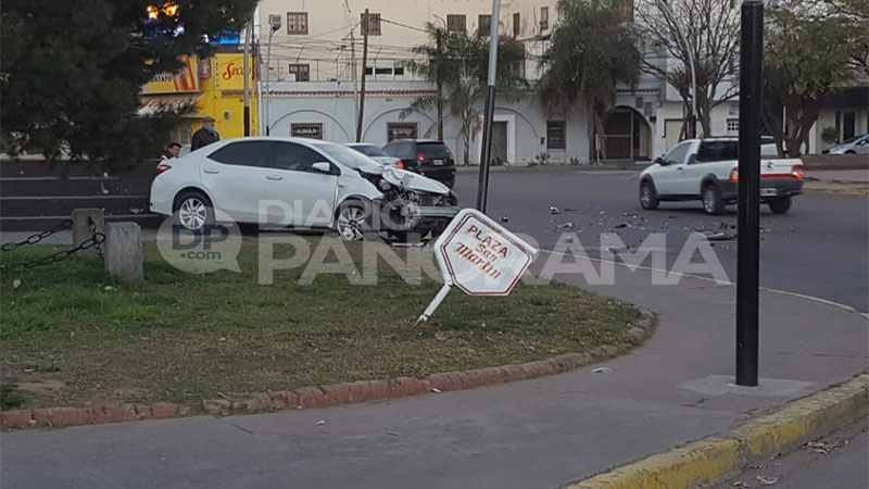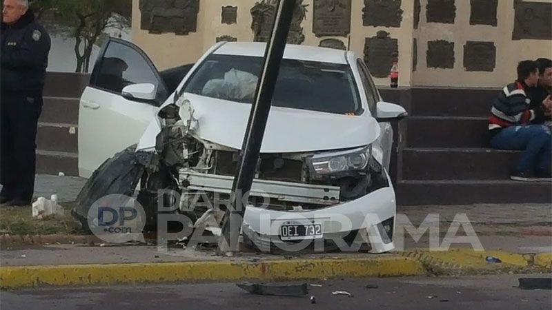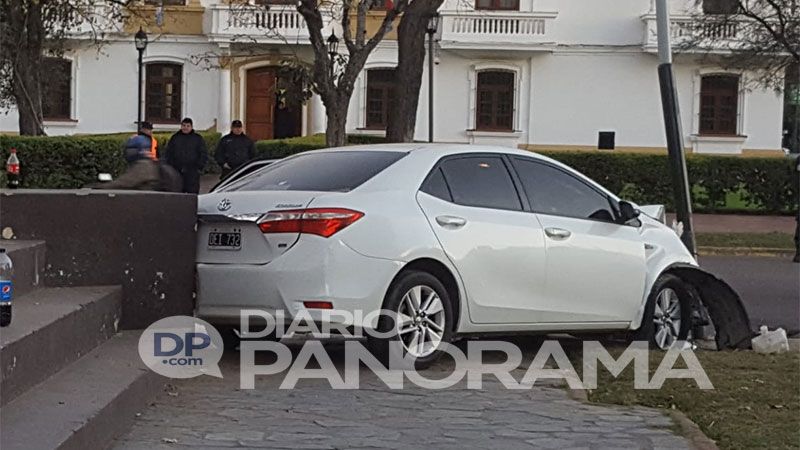 El auto subió a la plaza San Martín y tras embestir un poste terminó casi en sentido contrario en el monumento a San Martín.