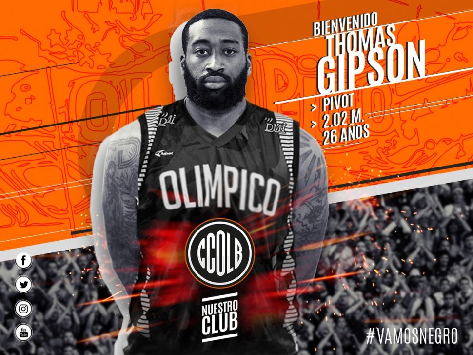 Olímpico sumó una ficha más a su plantel para afrontar la próxima temporada de la Liga Nacional de Básquet y la Liga Sudamericana. Contrató al interno Thomas Gipson para reforzar el juego interno.